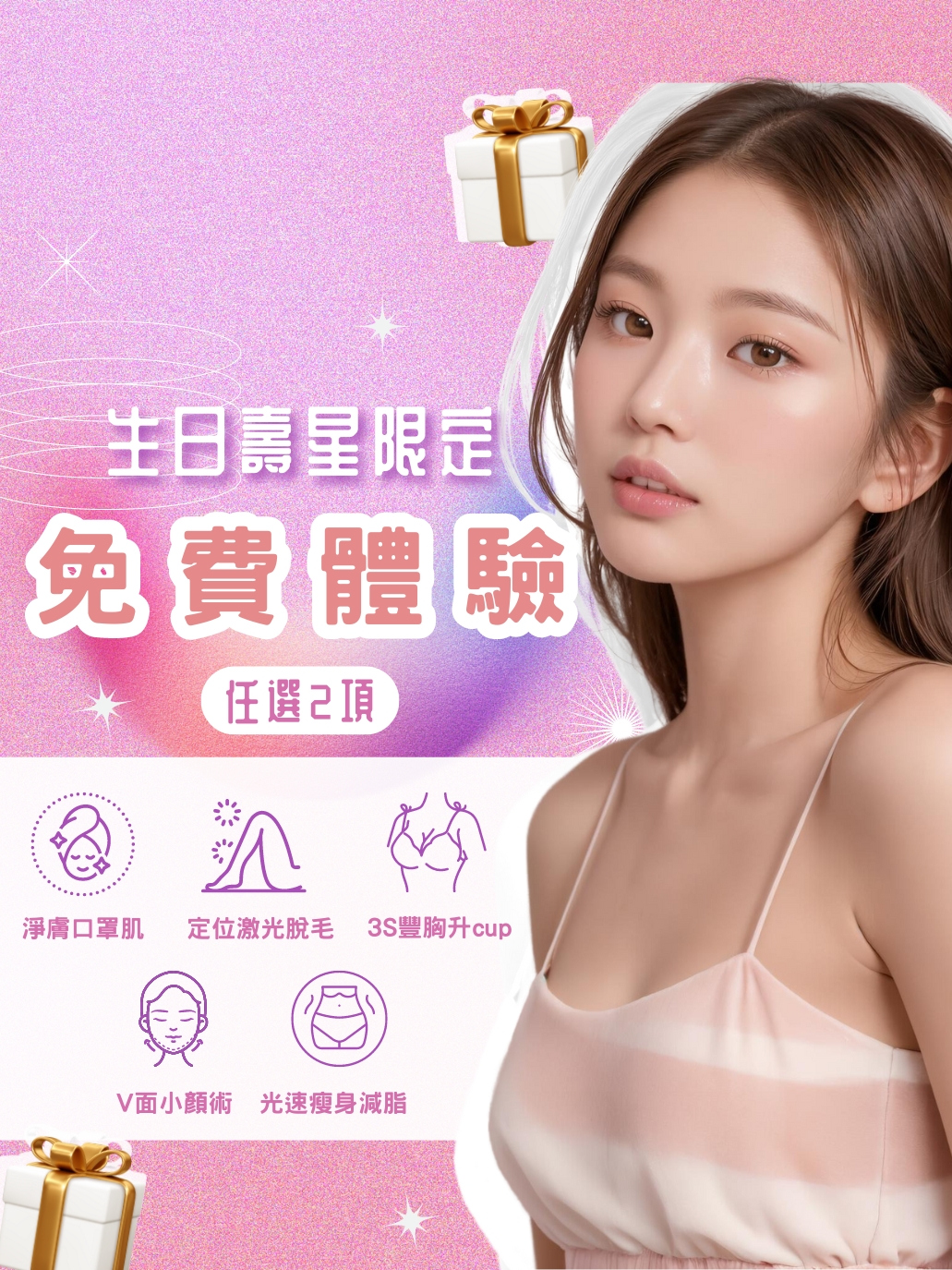 回復胸部堅挺、豐滿、有彈性的狀態。有效改善胸部下垂、外擴、大小胸、產後胸部鬆弛等問題。療程無需開刀、服藥、打針,輕輕鬆鬆就可以擁有完美胸型。